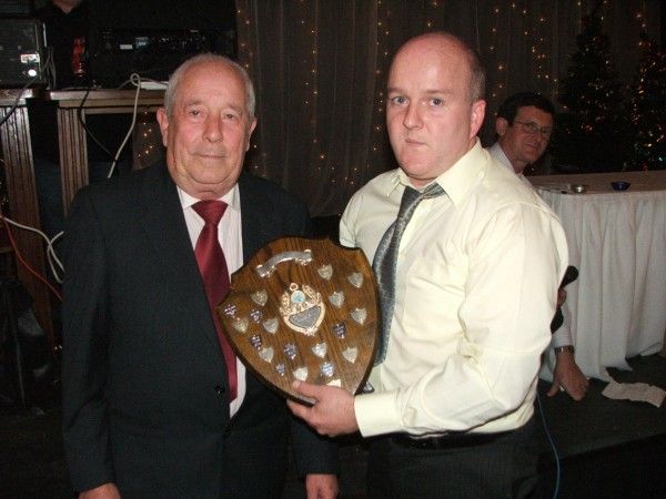 Fergal (Budgie) Marron receives Clubman of the Year from club president Jamsie McAtamney