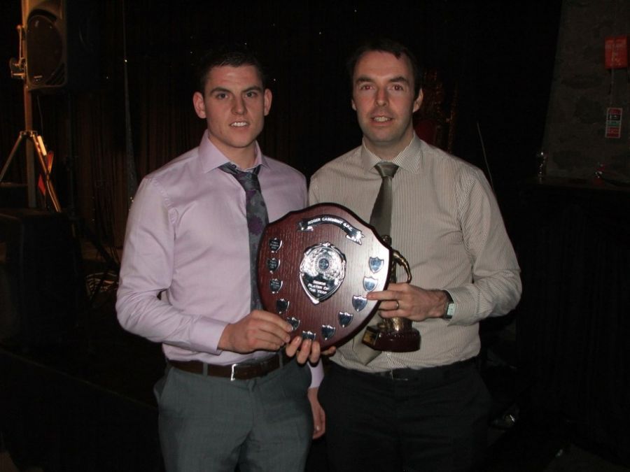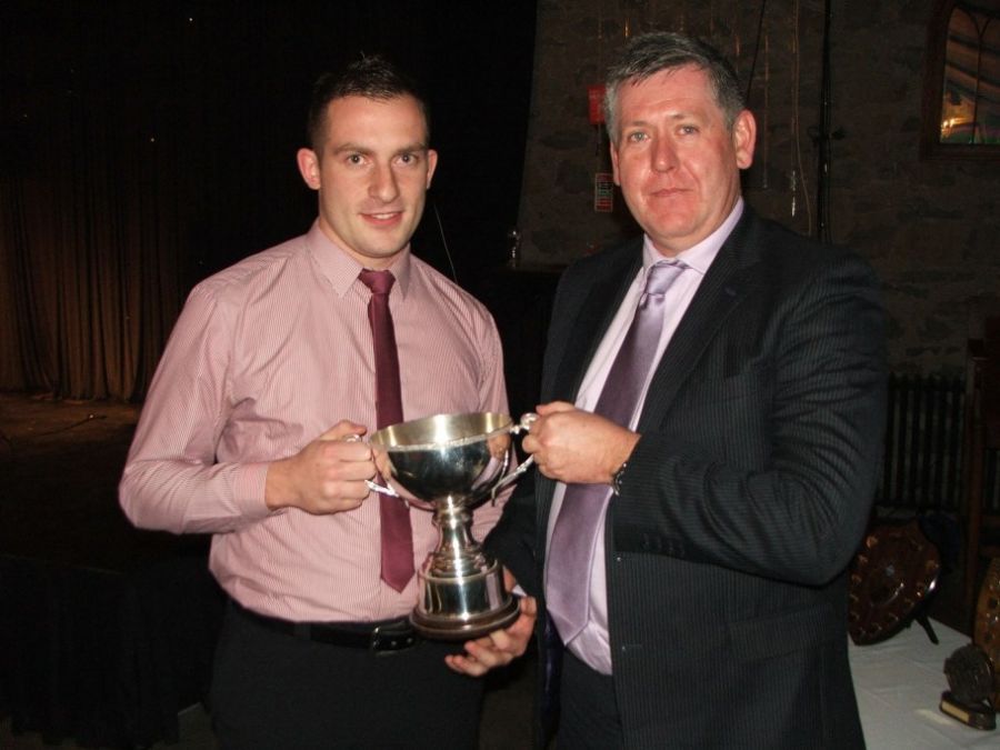 Frankie Doherty presents Reserve POTY to Niall Delargy on behalf of his brother Shane Delargy