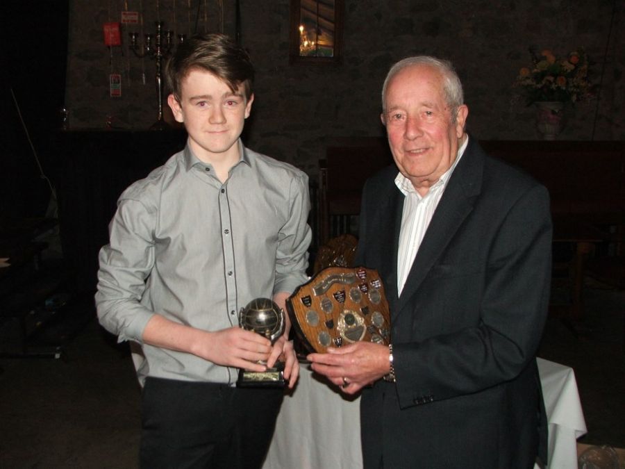 Stephen Kelly receives U16 POTY from Club President James McAtamney