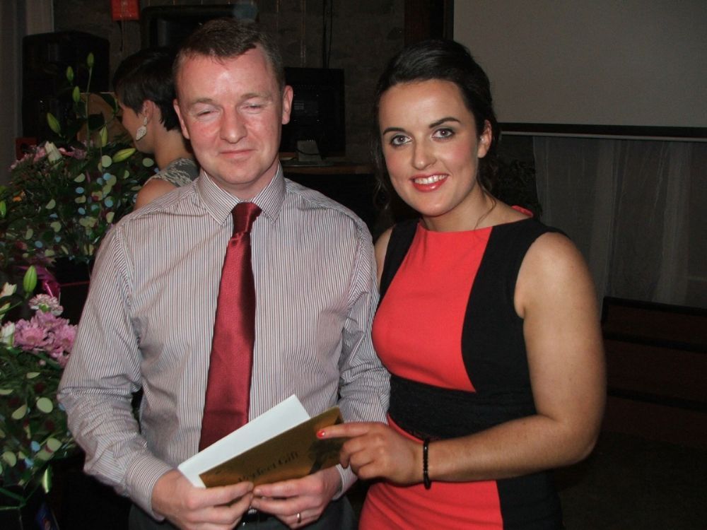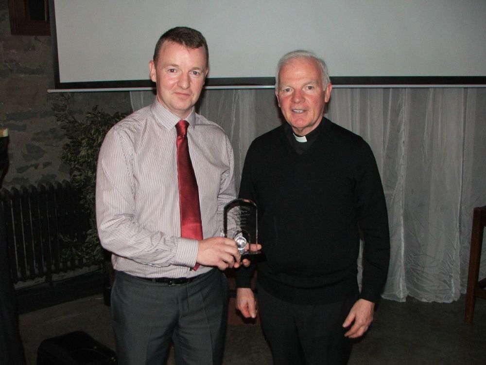 Paul McKee receives Camogie Clubperson of the year from parish priest Fr Curran