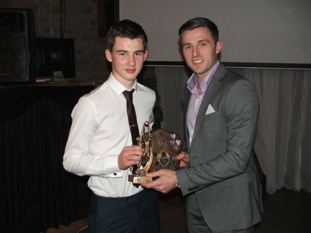 Conor McGee receives U16 POTY from Shane McGrath