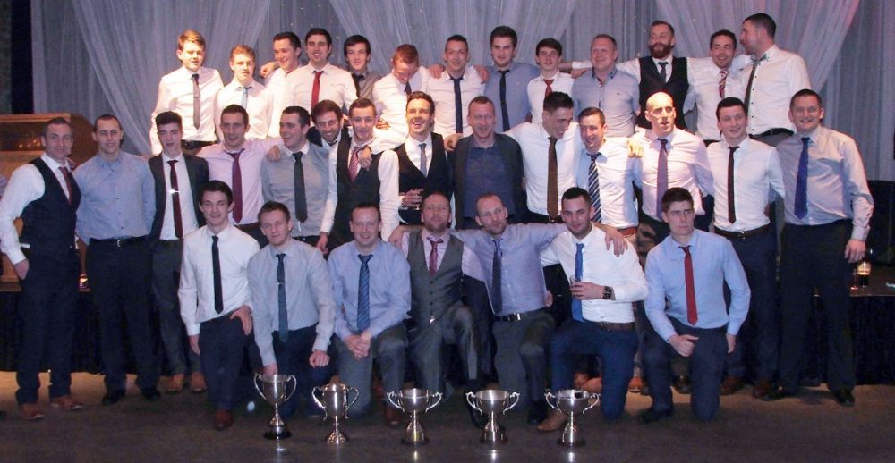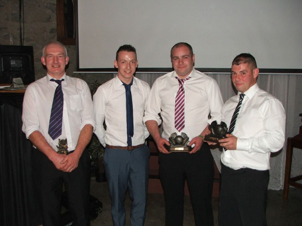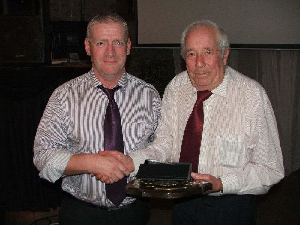 Adrian Carey receives the Div 2 Reserve League & Senior Reserve Championship Trophies from Columb Walsh