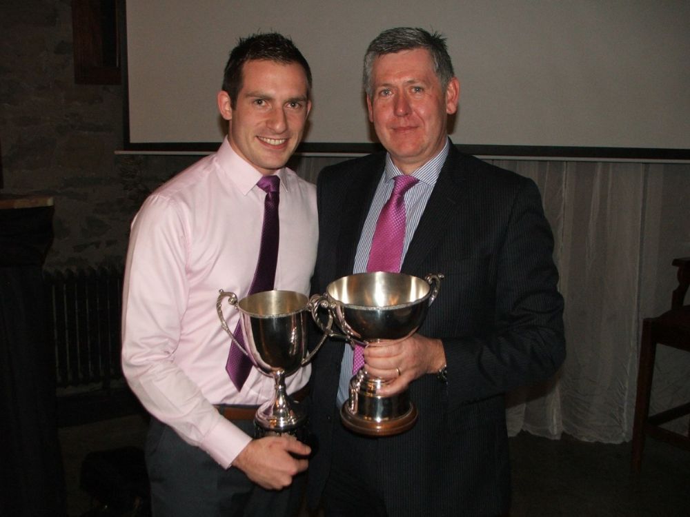 Johnny Convery receives the Intermediate Championship and Div 2 League Trophies from Column Walsh