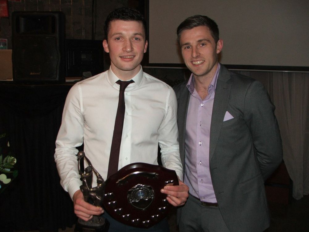 Dermot McAleese receives the Senior POTY from Shane McGrath